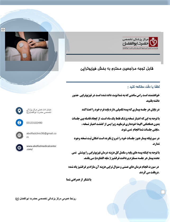 در دنیایی که همه چیز با سرعت میگذرد، فیزیوتراپی دعوتی است برای مکث، برای توجه به خود، برای به حرکت طبیعی بدن است. بدن ما لیاقت آرامش دارد، و فیزیوتراپی یکی از مهربانترین راهها برای رسیدن به حرکت طبیعی بدن است .